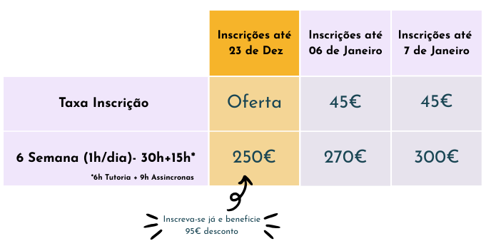 Próxima data: 12 Janeiro 2026 – 20 Fevereiro 2026